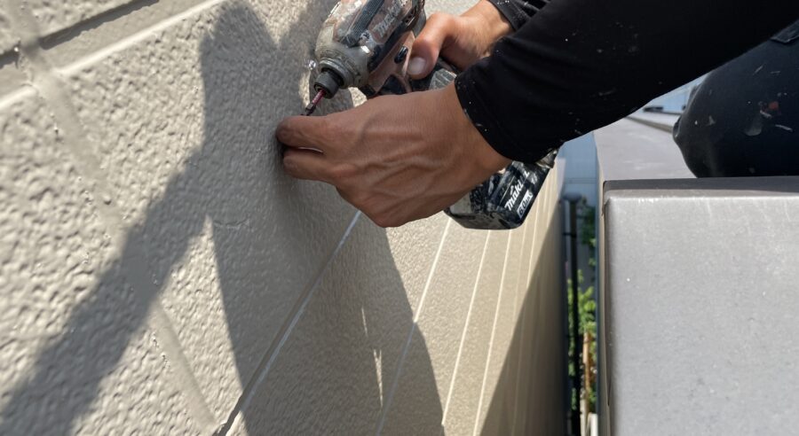 下地調整が終わったら、防水シートを既存の外壁全体に張り付けます。この防水シートは、雨水の浸入を防ぎ、建物の内部を保護する役割を果たします。その後、新しい外壁材を専用の金具やビスなどを使用して固定します。