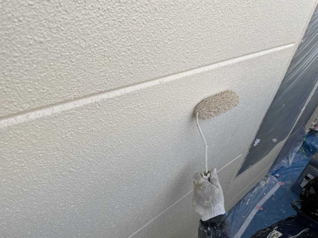 最後に、上塗りを行います。 上塗りは、外壁の美観を決定づける最も重要な工程です。ウレタン塗料を丁寧に塗り重ね、均一な塗膜を形成します。 上塗りは、通常2回塗りで行われ、塗膜の耐久性を高めます。